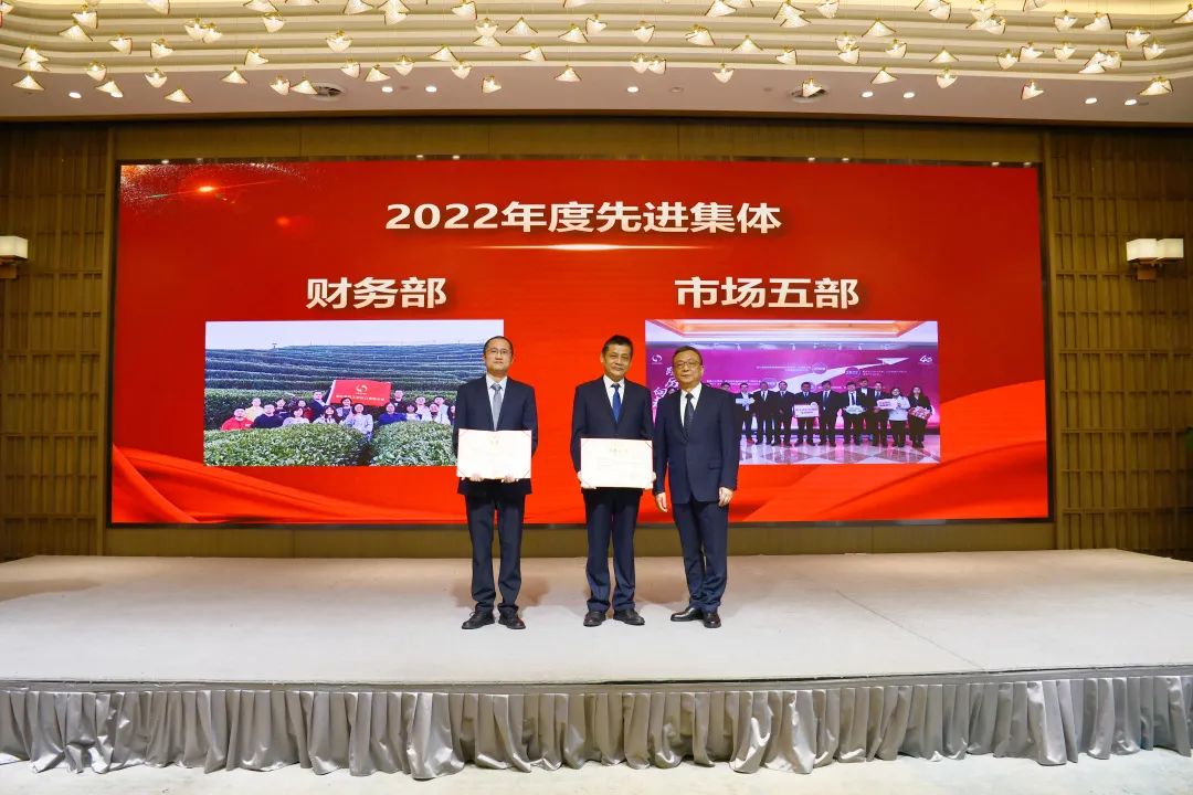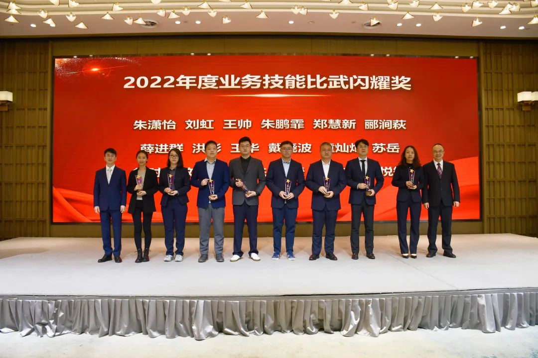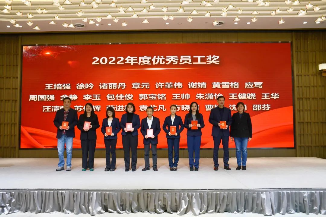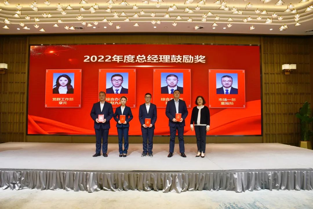 黨委副書記、總經理王芬宣讀《中共浙江省國際貿易集團有限公司委員會關于表彰省國貿集團2022年度先進集體和個人貢獻獎的決定》和《浙江省化工進出口有限公司關于表彰2022年度先進集體及個人的決定》文件,隨后對獲獎人員進行了表彰。